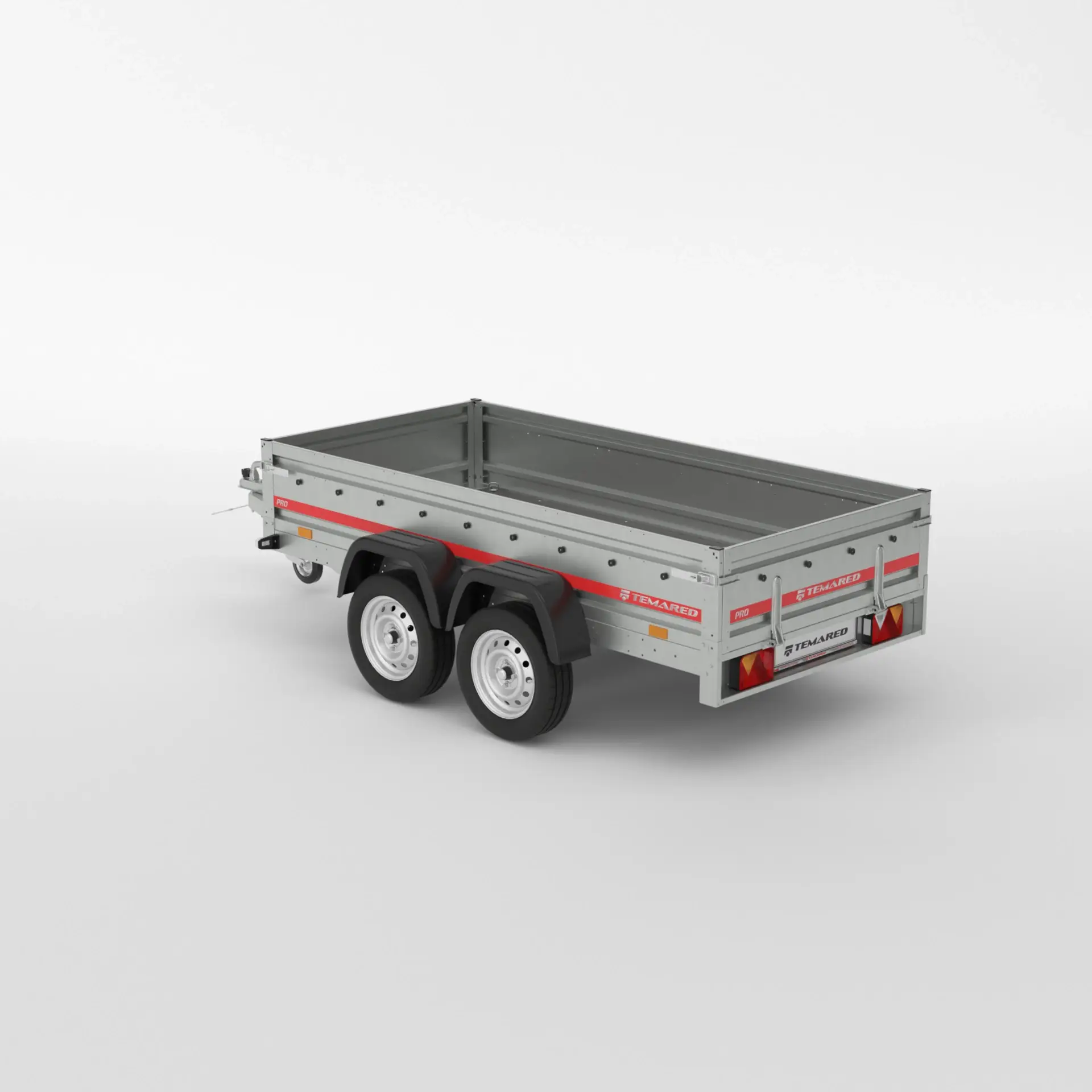 Močna vijakova konstrukcija zagotavlja dolgoletno brezhibno uporabo. Nosilni okvir iz upognjenih profilov iz pocinkane pločevine. Tla iz visokokakovostnega vodotesnega protizdrsnega vezanega lesa. Odpiranje spredaj in zadaj. Namestitev transportnih trakov (4 kos.).